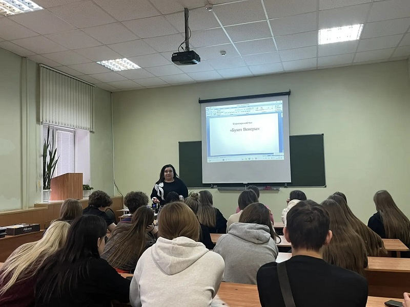 "Букет Венеры"- так назывался открытый кураторский час, проводимый куратором групп Э-К251, Ф-К251, СД-К251, старшим преподавателем кафедры гуманитарных, естественнонаучных и юридических дисциплин О.Г. Кретовой.